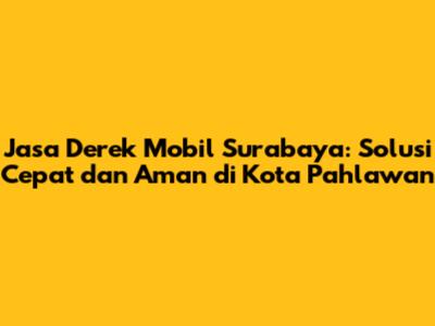 Jasa derek mobil Surabaya adalah layanan krusial bagi siapa saja yang mengalami masalah dengan kendaraan mereka di kota pahlawan ini. Bayangkan Anda sedang dalam perjalanan penting, tiba-tiba mobil mogok di tengah jalan. Tentu saja, situasi ini bisa sangat menjengkelkan dan mengganggu rencana Anda. Untungnya, dengan adanya jasa derek mobil Surabaya, masalah tersebut dapat diatasi dengan cepat dan efisien. Artikel ini akan membahas secara mendalam mengenai layanan derek mobil di Surabaya, meliputi jenis layanan, keuntungan, tips memilih, dan hal-hal penting lainnya yang perlu Anda ketahui.