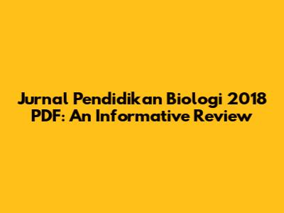Jurnal Pendidikan Biologi 2018 PDF: An Informative Review