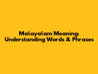 Malayalam Meaning: Understanding Words & Phrases