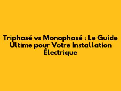Triphasé Vs Monophasé : Le Guide Ultime Pour Votre Installation Électrique