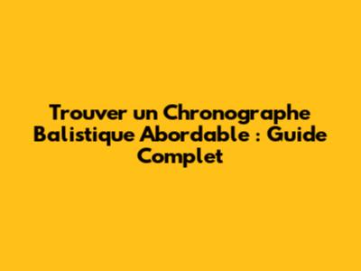 Trouver Un Chronographe Balistique Abordable : Guide Complet